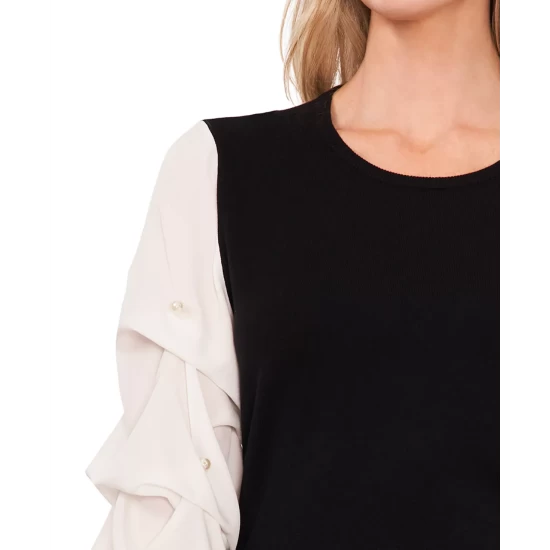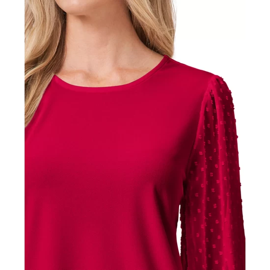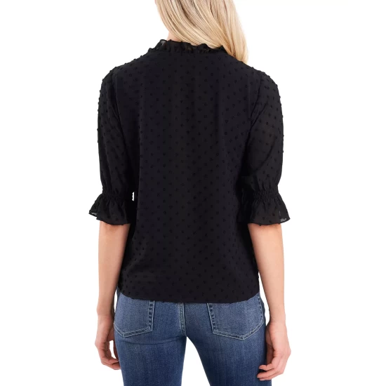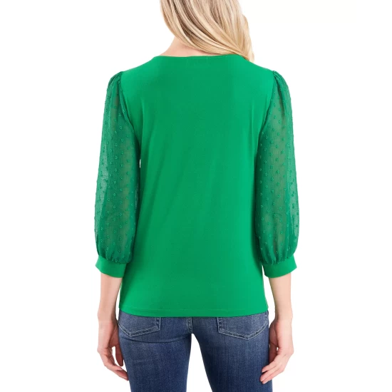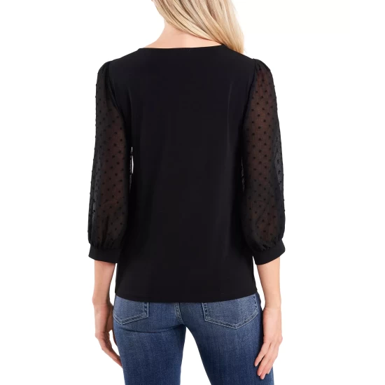 It’s all about the sleeves. This CeCe top is an office essential with its sophisticated fit and sheer, clip-dot sleeves.