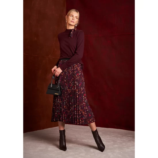 - Printed scarf-style ties at side neckline