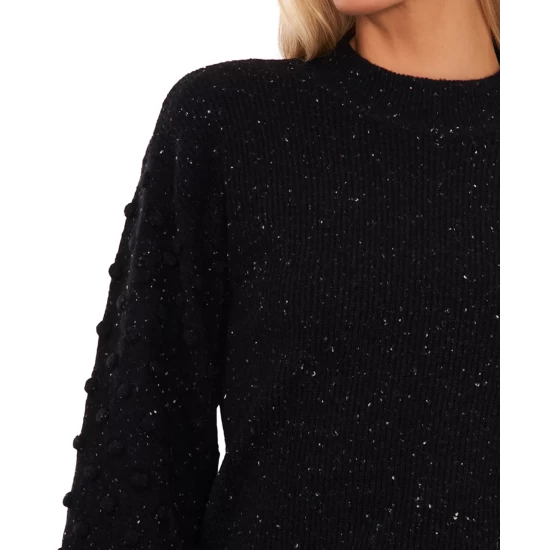 CeCe rethinks the traditional long-sleeve sweater, adding in a printed scarf-like tie detail at the neckline.