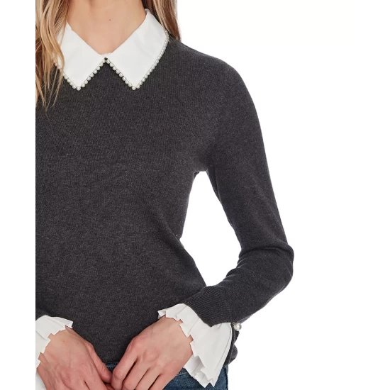 CeCe adds a super feminine twist to a Peter Pan collar with delicate imitation pearls on this so-sweet cotton sweater. Ruffled sleeve cuffs round out this classically stylish look.