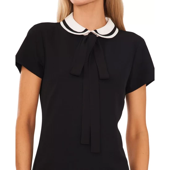 - Peter Pan collar with faux pearls; keyhole with loop & imitation-pearl button closure at back