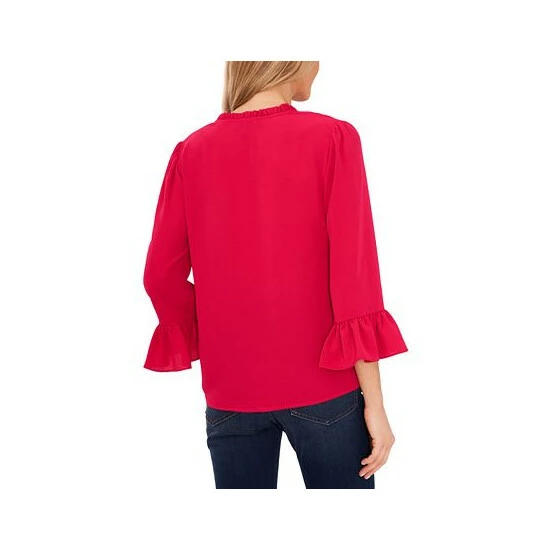 Dramatic ruffled sleeves bring a mega dose of flair to this pretty V-neck top from CeCe.