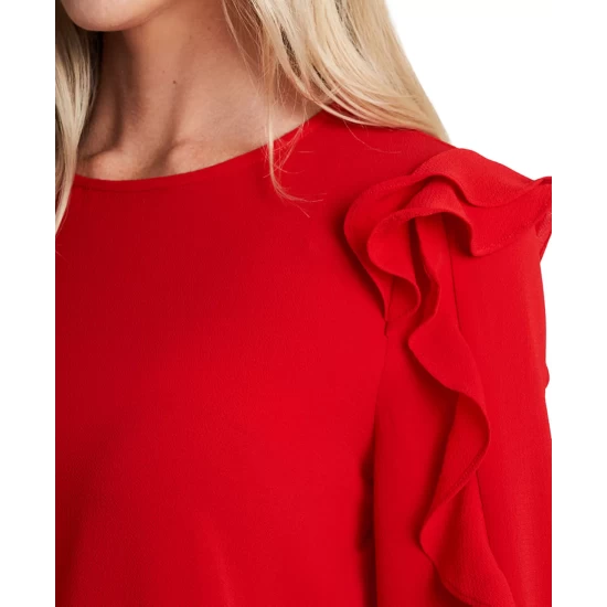 Ruffle some feathers in this beautiful crewneck blouse from CeCe.