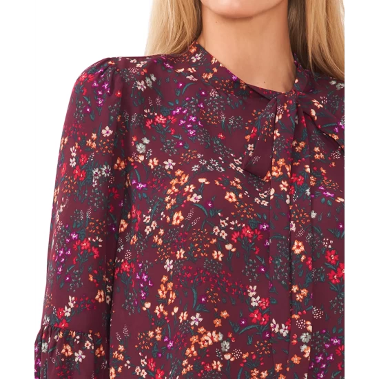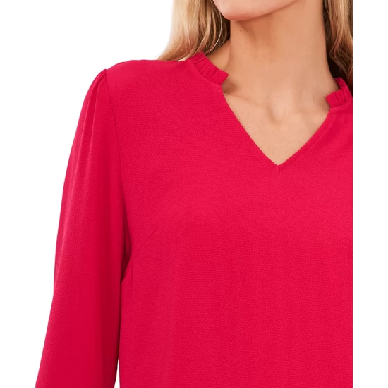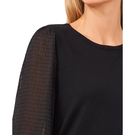 Made from 100% cotton, this top from CeCe features chic sheer puff sleeves for an on-trend luck.