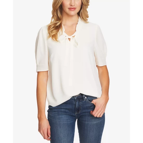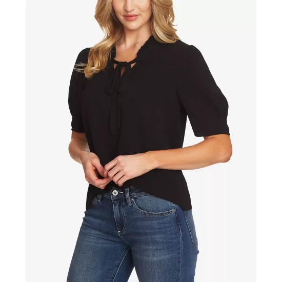 A bold tie detail at the neck and peplum hem team up to perfection in this blouse from CeCe.
