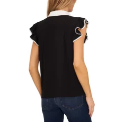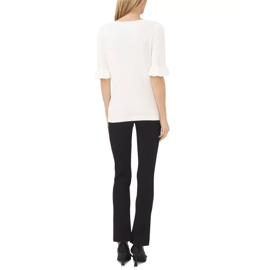 - Ruffled V-neck