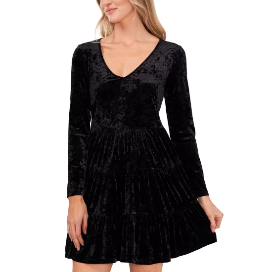 Fall in love with CeCe’s crushed velvet dress, designed for effortless wear with pullover styling and a flirty tiered skirt.