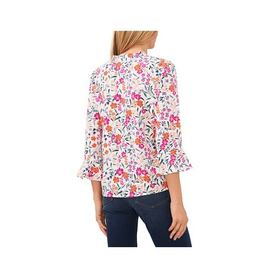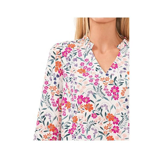 Framed by sweet 3/4-length bell sleeves for added romance, CeCe’s split-neck top is finished with a gorgeous floral print for timeless appeal.