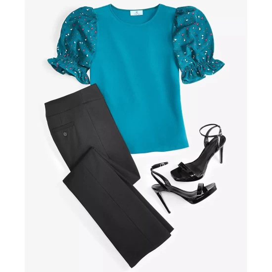 Top 10 😀 CeCe 👩 Women’s Mixed Media Puff Sleeve Top & Slim-Leg Bootcut Pants Radiant Fuchsia 🎁