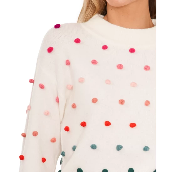 Peppered with a rainbow of adorable pom poms, CeCe’s soft long-sleeve sweater brightens your look every time you wear it.