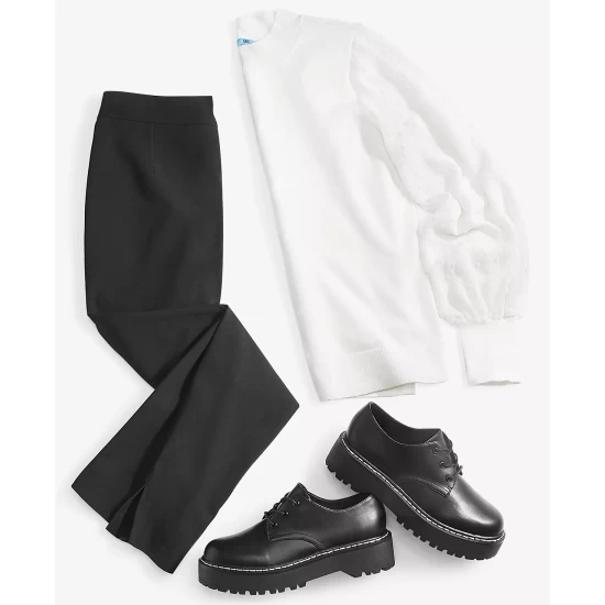 - Long sleeves with imitation pearl buttons at fold-back cuffs and contrast micro-ruffled cuffs