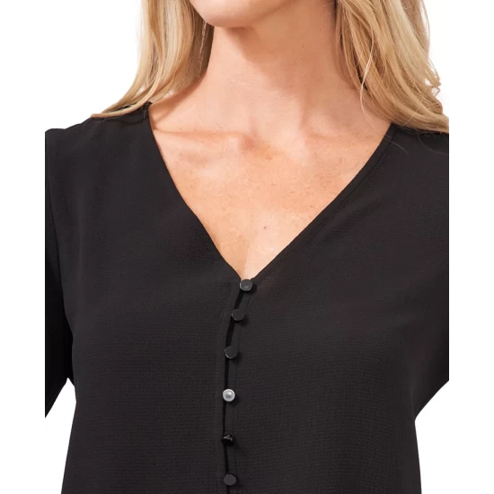 CeCe adds romantic detailing to the ultra-chic long sleeve dress with the addition of a smocked neckline, ruffled hem, and stylish buttoned cuffs.