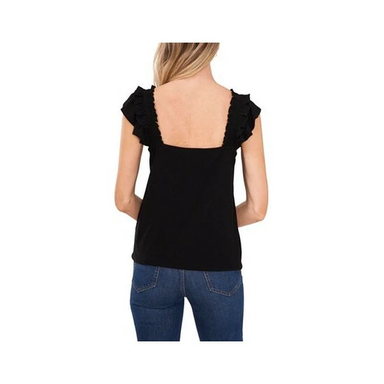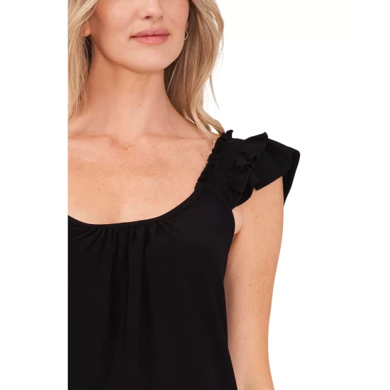 CeCe elevates the classic tank top with ultra-cute detailing; a shirred neckline and smocked, ruffle sleeves lend a chic finish to this casualwear piece.