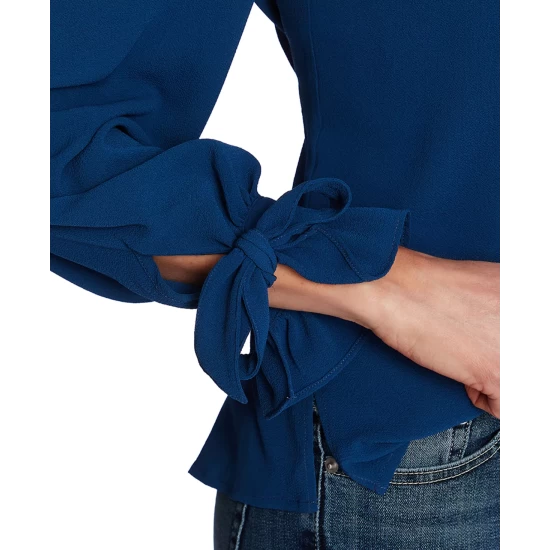 CeCe provides class and style with this tie-neck sweater dress featuring flared cuffs for added sophistication.