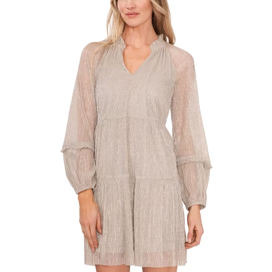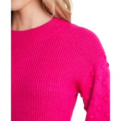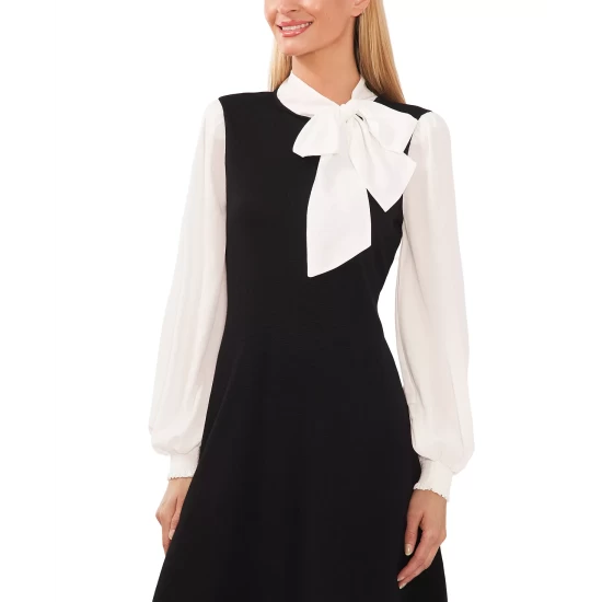 Look effortlessly glamorous in CeCe’s sophisticated mixed media dress, featuring a sweater dress with stunning puffed sleeves and smocked cuffs.