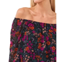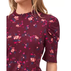 Best Sale ๐คฉ CeCe ๐ฉ Women’s Floral-Print Ruffled Cap-Sleeve Midi ๐ Dress Rich Black โญ