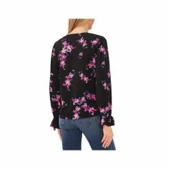 Brand new โ๏ธ CeCe ๐ฉ Women’s Floral-Print Ruffled Tie-Sleeve Button-Down Top Rich Black ๐